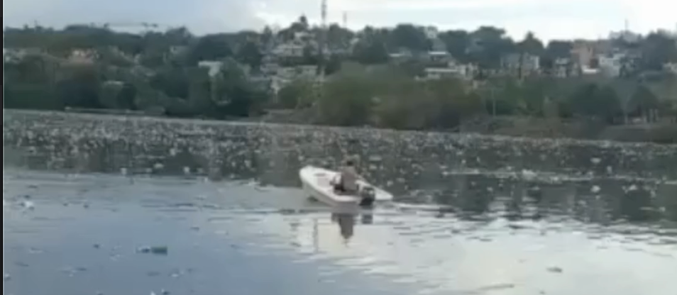 En el video se observa cómo un bote navega con problema en sus aguas a causa de los desechos.